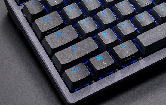 Các keycaps doubleshot của ROG PBT mang lại cảm giác độc đáo và cao cấp, cũng như mang lại độ bền lâu dài. Thiết kế phím đã được tối ưu hóa với nắp phím có chiều cao vừa phải (tương tự như Cherry profile keycaps) và thân ngắn hơn để giảm rung lắc phím, đồng thời mang lại trải nghiệm người dùng thoải mái hơn.